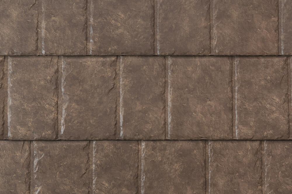 The thick, random look of hand-split shakes is achieved through a precision stamping formation similar to how body panels on cars and trucks are made. These deeply-formed, 4-way interlocking panels are attached with concealed nails.